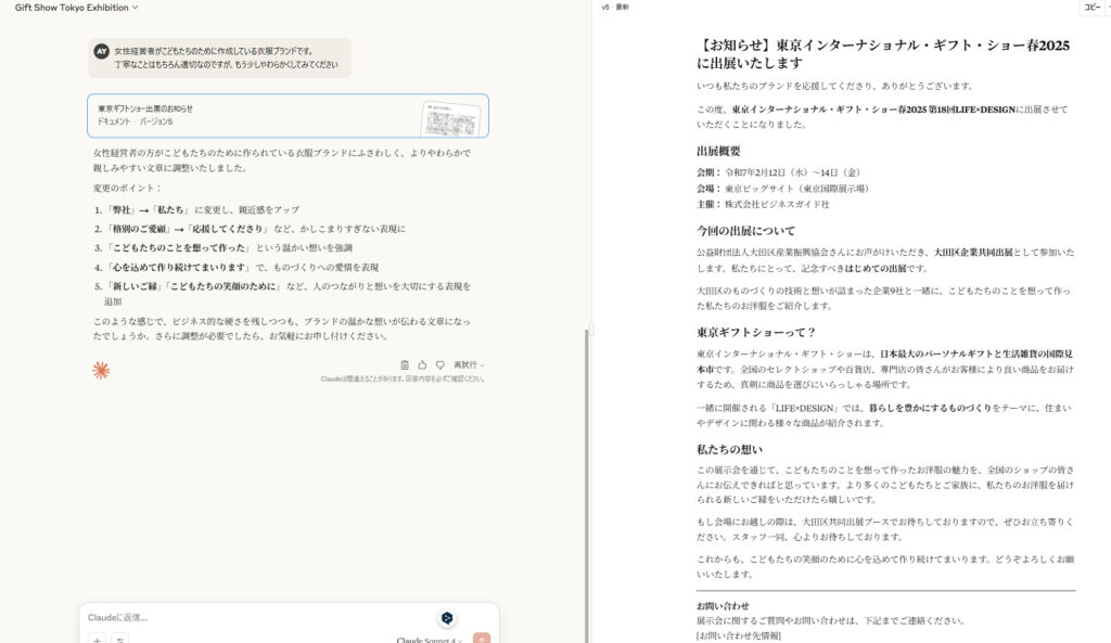 この展示会を通じて、こどもたちのことを想って作ったお洋服の魅力を、全国のショップの皆さんにお伝えできればと思っています。より多くのこどもたちとご家族に、私たちのお洋服を届けられる新しいご縁をいただけたら嬉しいです。
